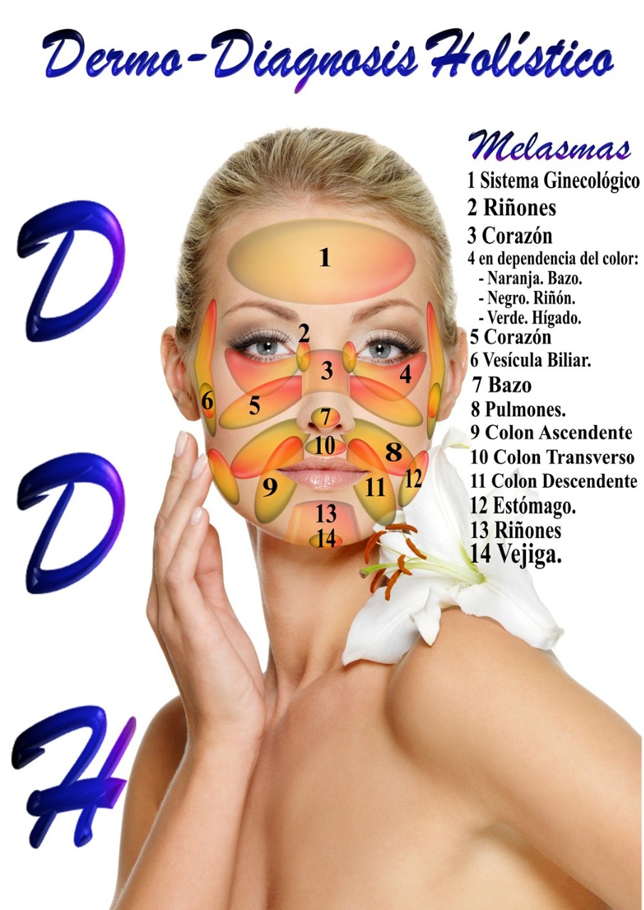 Sin embargo en las Ciencias Médicas Orientales su estudio es mucho más profundo y se le da una mayor relevancia, su proceso empírico de observación de más de 4000 años le llevaron a identificar cada mancha con una disfunción orgánicas por exceso o defecto de energía en el Órgano y que está relacionado con un medio de protección del cuerpo a la proyección de nuestros órganos en la cara por lo que podemos diagnosticar y tratar los órganos a través de sus manifestaciones externas.